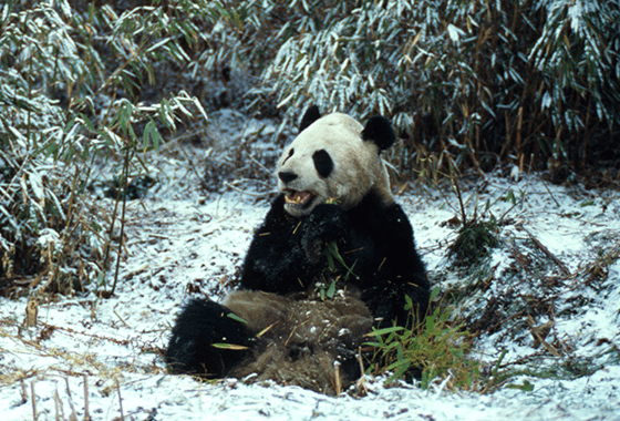 きわめて特殊な生態的ニッチを占めているジャイアントパンダの食物は主にタケだ。